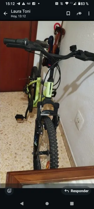 Bicicleta de montaña B’TWIN ideal para paseos, rutas off-road ligeras y uso diario. Está en buen estado general, perfectamente funcional y lista para rodar. 🔹 Marca: B’TWIN (Decathlon) 🔹 Tipo: Mountain Bike (MTB) 🔹 Cuadro: Resistente y ligero, diseño clásico ideal para montaña y ciudad 🔹 Horquilla delantera con suspensión: absorbe bien irregularidades del terreno 🔹 Frenos de disco: mayor control y seguridad en todo tipo de superficies 🔹 Transmisión: cambios suaves para adaptarse a subidas y bajadas. 🔹 Ruedas: neumáticos con buen agarre, perfectos para caminos y tierra 🔹 Uso: rutas todoterreno, paseos y entrenamiento.