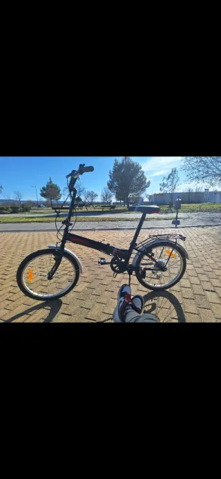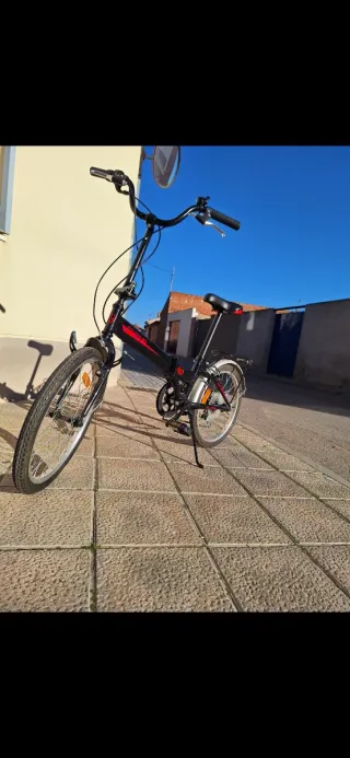 Bicicleta plegable en perfecto estado, ideal para desplazamientos urbanos o para llevarla contigo a donde vayas. - Color negro. - Ruedas de 20 pulgadas. - Frenos eficientes. - Sillín ajustable.