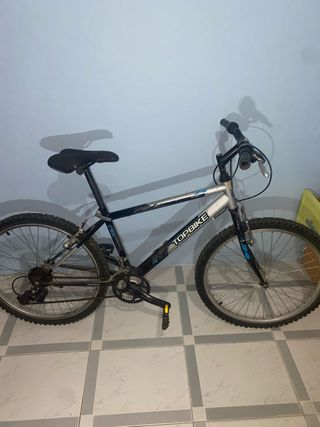 Bicicleta de montaña Rockrider 340 con ruedas de 26 pulgadas. - Cuadro de aluminio. - Frenos V-brake. - Cambio Shimano tourney nuevo. - Cadena nueva. - Ruedas 26" con camaras antipinchazos. - Cubierta trasera Maxxis Nueva. - Suspensión delantera regulable en dureza.