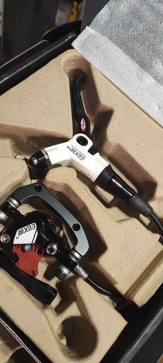 Juego de frenos Avid Elixir CR Carbon, completamente nuevos a estrenar. Están impecables, sin usar. Ya no sé fabrican frenos como estos de ligeros y fiables.