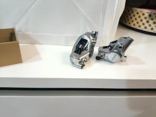 Frenos de disco SRAM Red D1. - Diseño aerodinámico. - Acabado plateado brillante.