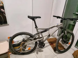 Vendo o cambio por bicicleta de suspensión delantera. Bicicleta de montaña Rockrider con doble suspensión. - Cuadro de aluminio. - Amortiguador trasero. - Frenos de disco. - Ruedas de 26 pulgadas. - Cambios de marcha Shimano (Actualmente en uso ,para ir y volver del trabajo de vez en cuando)