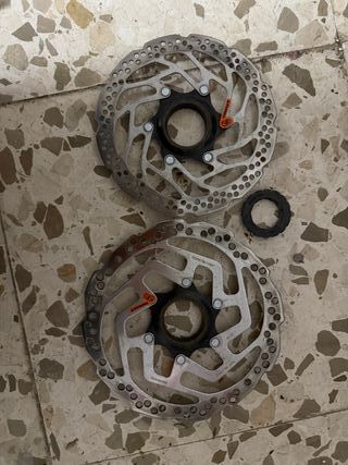 Se venden dos discos de freno Shimano, uno de 180mm y otro de 160mm, ambos con sistema de anclaje Centerlock. - Disco de 180mm. - Disco de 160mm. - Anclaje Centerlock.