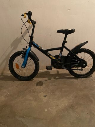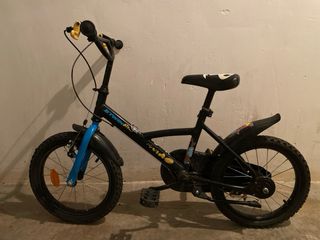 Bicicleta infantil Btwin en buen estado, lista para nuevas aventuras. - Color negro y azul. - Ruedas de 16 pulgadas. - Frenos de mano.