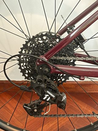 Bicicleta versátil. Ideal para explorar caminos y senderos. - Cuadro de aluminio. - Frenos de disco SRAM APEX Tracción mecánica con pistones hidráulicos que asegura fiabilidad y eficacia - Ruedas de 650x47 con neumáticos anchos. -Horquilla de carbono -Cambio SRAM APEX Comprada en Agosto 2024