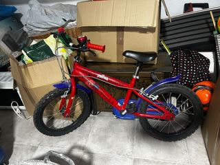 Bicicleta roja con diseño de Spiderman, ideal para niños de 4 a 8 años. Perfecta para iniciarse en el ciclismo. - Ruedas de 16 pulgadas. - Frenos delanteros y traseros. - Diseño llamativo de Spiderman.