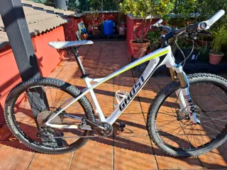 Bicicleta de montaña Giant en color blanco, ideal para paseos y rutas. - Cuadro de aluminio. - Ruedas de 27 pulgadas. - Solo cuadro,ruedas, pedales, sillén, el resto como los frenos y el cableado de ellos me lo han robado en garaje. Buena bicicleta para transformar en eléctrica