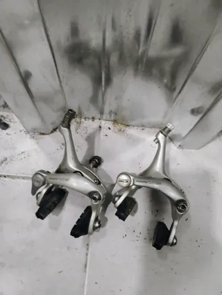 Par de frenos de bicicleta Shimano 105. Modelo 1055. En buen estado, zapatas con mucha vida por delante. Ideal restauración bicicleta clásica - Frenos de pinza. - Color plateado. Specialized, Trek, Scott, Canyon, Giant, Orbea, Cannondale, Pinarello, BMC, BH, Merida, Megamo, Lapierre, Mondraker, Santa Cruz, Cube, Focus, Bianchi, Pivot, Ibis, Niner, Felt, Marin, Rocky Mountain, Commencal, Lapierre, Conor, wrc, Orbea, berria, MMR