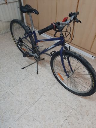 Bicicleta de montaña B'Twin en talla M, ideal para hombres. Se encuentra en muy buen estado, lista para usar. - Cuadro de aluminio. - Suspensión delantera. - Frenos de disco. - Cambio Shimano.