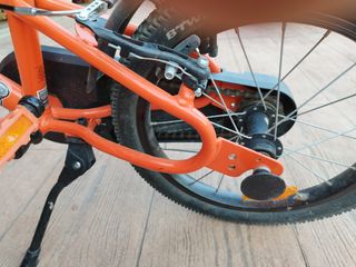 Bicicleta infantil de color naranja en perfecto estado, ideal para los más pequeños. - Ruedas de 16 pulgadas. - Frenos delanteros y traseros. - Sillín ajustable en altura. - Pedales antideslizantes.