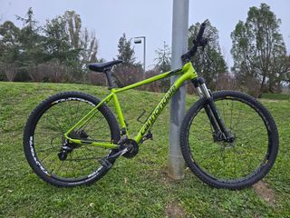 Bicicleta de monaña (Mountain Bike) Cannondale Trail 7. - Cuadro de aluminio. - Suspensión delantera bloqueable. - Ruedas de 29 pulgadas. - Frenos de disco hidráulicos. - Transmisión Shimano 2x9. - Rueda delantera + Buje Mavic Crossmax Élite.