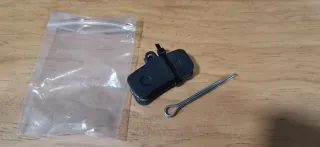 Pastillas de freno para bicicleta de montaña (BTT). Incluye un juego de pastillas y un pasador. Yo tengo una orbea wild y me van perfectas - Pastillas de freno negras. - Pasador metálico con ojal.