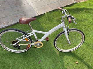 Bicicleta B’Twin de paseo/urbana con cuadro bajo, cómoda y fácil de usar. Ideal para ciudad y trayectos diarios. ✔️ Ruedas 24” ✔️ Cambio trasero ✔️ Frenos funcionando correctamente ✔️ Muy cómoda para subir y bajar Bici cuidada y lista para usar. Uso normal, sin golpes importantes. Se puede ver y probar.