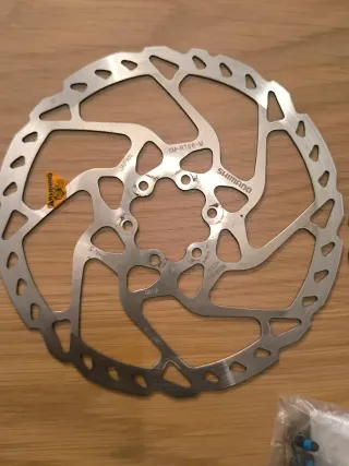 Set de dos discos de freno Shimano SM-RT66-M. Usados 1 mes. Al ser reemplazados por Carbon ti. - Diámetro de 180 y 160 mm. - Diseño para rotor de 6 tornillos. - Tornillos incluidos.