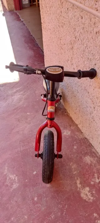 Ideal para aprender a pedalear para niños de unos 4 años Talla 9" Frenos V-Brake Cuadro de aluminio Peso 10kg Dimensiones 115x52x77 Ruedines incluidos Regalo cámara de neumático sin estrenar