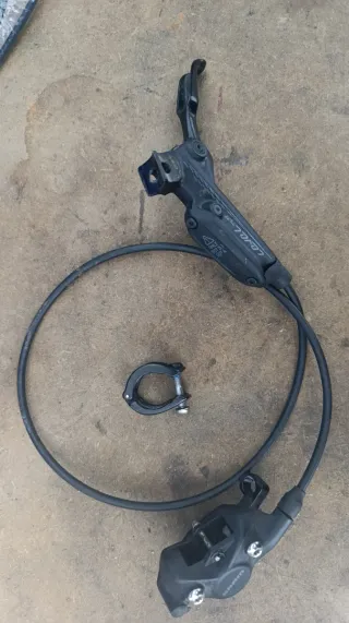 Frenos de disco SRAM Code R para bicicleta de montaña. Comprados en 2023, están en muy buen estado. La maneta derecha le falta la pieza para regular la distancia de la maneta y le compré el recambio con la maneta nueva y no lo llegué a montar. Ambos frenos los incluyo con pastillas. Las delanteras son galfer. Solamente las pastillas galfer costaron 20. Sram Shimano Trek commencal descenso enduro eléctrica Bosch dji gopro mtb ciclismo Fox rock shox