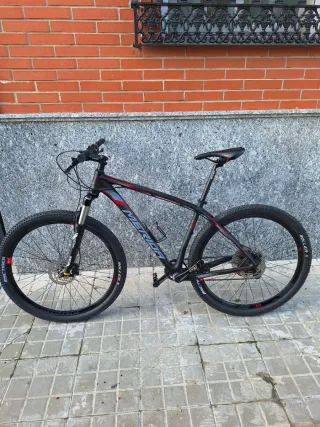Bicicleta de montaña en color rojo, lista para tus aventuras. - Cuadro de aluminio. - Ruedas de 29 pulgadas, y 2 cubiertas de tacos más Anchas. - Frenos de disco, más 2 disco más con diferente dibujo - Suspensión delantera. -Sillon tengo el original y una tija de sillón en carbono