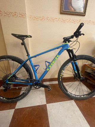 trek superfly 9.8, cuadro de carbono, potencia ritchey carbono, manillar bontrager rxl carbono, grupo completo xx1, horquilla rock shox sid, freno xt, pedales xt, ruedas mavic crossride con cubiertas ardent race recien cambiadas, cadena y plato de 34 recien cambiados ni 100 km talla l
