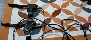 Manetas de freno para bicicleta eléctrica, en buen estado. Son dos unidades. - Ideales para reparar o mejorar tu bici eléctrica. - Color negro. - Incluye cables.