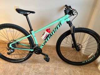 Bicicleta de montaña Specialized Rockhopper en color verde menta. - Cuadro de aluminio. - Ruedas de 29 pulgadas. - Frenos de disco. - Suspensión delantera. -Talla M Usada 3 veces. NEGOCIABLE!