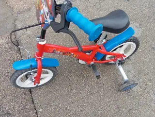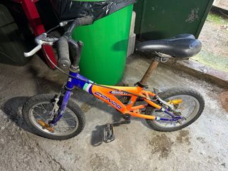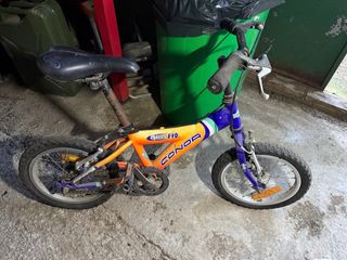 Bicicleta infantil de la marca Conor, modelo Micro 140. Bicicleta para restaurar, color desgastado, oxido en barra de sillin y algun lado más, funciona perfectamente. Las ruedas están flojas no sé si del tiempo o están pinchadas.