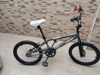 Bicicleta BMX en buen estado, ideal para principiantes. - Marca: Weed - Color: Gris oscuro con detalles rojos - Sillín blanco - Llantas en buen estado