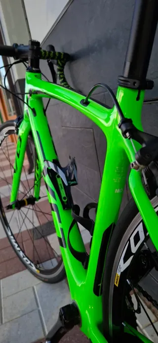 Bicicleta de carretera BH Evo con cuadro de carbono. - Cuadro de carbono. - Color verde fluor brillante. - Ruedas Mavic Cosmic. - Frenos y cambios ultegra,cadena nueva 150km
