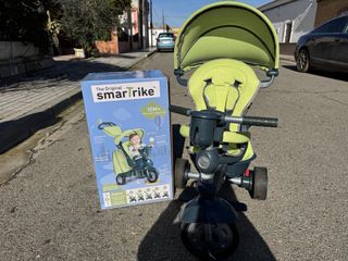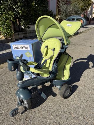Preciosa bicicleta infantil Smartrike en color turquesa y negro. Está en muy buen estado y lista para usar. Prácticamente sin uso y con su embalaje original - Triciclo 3 en 1, ideal para niños pequeños. - Capota protectora. - Cesta portaobjetos de gran capacidad. -Arnés de seguridad como nuevos . -Múltiples partes y piezas que se van poniendo o quitando según la edad del bebé,muy estáble y segura y gira muy bien tanto con los pedales y manillar como cuando va empujando un adulto. -Respaldo ,manillar,capota y barra de seguridad con varias posiciones . -En el manillar tiene dos enganches para colocar la bolsa de la compra.