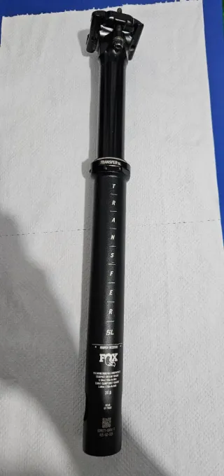 Tija telescópica Fox Transfer SL en color negro. Modelo SL. Tiene una longitud total de 38cm con inserción mínima de 30cm. Recorrido 100mm Está perfectamente,con el mantenimiento hecho. - Marca: Fox - Modelo: Transfer SL - Diámetro: 31.6 mm - Color: Negro