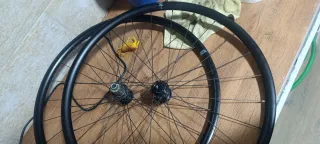 Juego de llantas para bicicleta de montaña. Están sin estrenar se desmontaron de la bici al llegar a casa, aro trasero asimétrico para un reparto de fuerzas mejor, son tubeles perfil interno 30mm las medidas se ven en las fotos