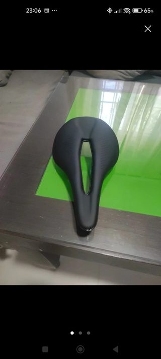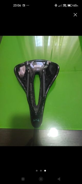 Sillín de bicicleta con acabado en carbono, ideal para mejorar el rendimiento y la comodidad en tus rutas. - Dimensiones: 240 mm de largo x 145 mm de ancho. - Material: Fibra de carbono.