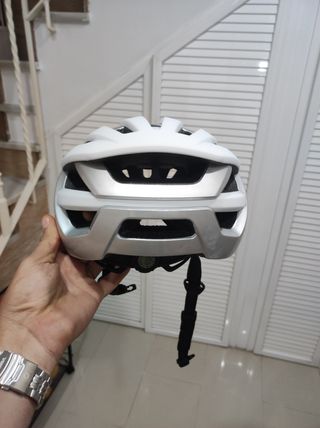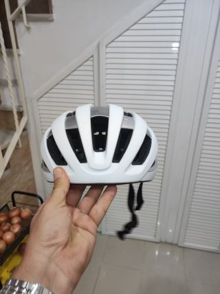 Casco de ciclismo WEST BIKING en talla L. Diseñado para ofrecer protección y comodidad en tus rutas. - Color blanco y detalles plateados. - Diseño aerodinámico con ventilación. - Correas ajustables para un ajuste seguro.