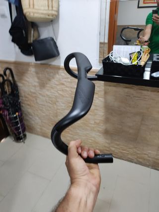 Manillar de carretera Tossek TA5500 en carbono. - Ancho: 400 mm - Profundidad: 100 mm Lo único que tiene es esa especie de punto que se ve en la foto,no perjudica su funcionamiento. Se vende tal cual se ve en foto sin acoples,etc.