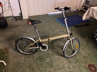 Bicicleta plegable de aluminio, modelo Urban Live de la marca Boomerang. nueva no a se probado nunca con funda incluida, nunca a salido a la calle - Cuadro de aluminio. - Ruedas de 20 pulgadas. - Portabultos trasero. - Sillín con detalles en cobre. dato falta una pieza de alante la cual está perdida pero se puede conseguir de manera muy sencilla.