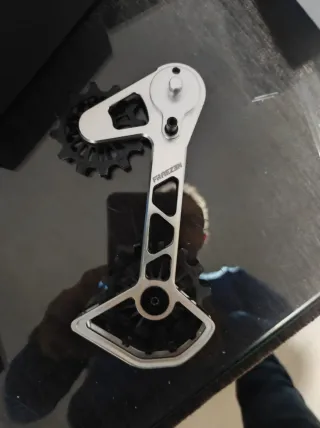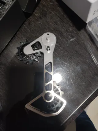 Cambio trasero Fraezen compatible con transmisiones Shimano y Sram. 77gramos - Diseño ligero y robusto. - Acabado en aluminio plateado.