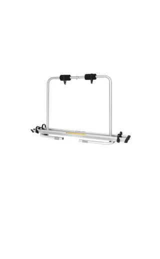 portabicicletas Fiamma Carry-Bike Caravan XL A. Diseñado para instalarse en la lanza estándar de una caravana sin necesidad de taladrar. Transporta un máximo de dos bicicletas. La parte superior se inclina hacia adelante para permitir el acceso al compartimento de almacenamiento de la caravana (cuando no lleva bicicletas montadas). Fabricado en aluminio anodizado y tiene una capacidad de carga máxima de 35 kg.