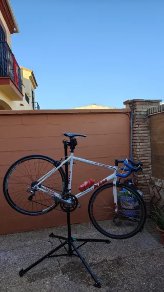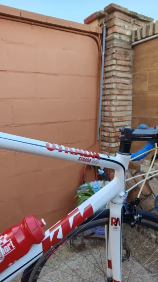 Bicicleta de carretera KTM Strada 57. - Cuadro de aluminio - Horquilla de carbono - Rueda delantera Shimano - Trasera alexrins - Casete 10v - Neumatico Michelin dynamic sport delantero - Neumático decathlon - Transmisión Shimano tiagra y ultegra Perfecta para iniciarse