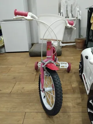 Bicicleta infantil en color rosa, con muy poco uso. - Diseño atractivo y juvenil. - Ideal para iniciarse en el ciclismo.