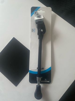 Pata de cabra para bicicleta de la marca Btwin. Compatible con ruedas de 24, 26 y 28. - Color negro. - Material: metal y plástico.