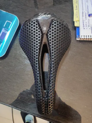Sillín de carbono con diseño 3D. SE HA USADO EN UNA RUTA,SE VE MARCA DE APRIETE EN RIELES - Medidas: 250x 145 mm. - Rieles: 7 x 9 mm.