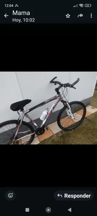 Bicicleta de montaña en color negro. - Cuadro de metal. - Ruedas de 26 pulgadas. - Frenos de disco. - Sillín ajustable. La bici lleva años sin usarse y supongo que habría q hacerle el mantenimiento básico, de tamaño es algo más pequeña q una bicicleta de adulto