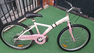Bicicleta de montaña en perfecto estado, siempre ha dormido a resquardo, tiene varios "extras": sillín de gel, porta bidón de aluminio, bolsita bajo sillín, luz trasera y ruedas mixtas valoradas en 50€ con pocos kms y pedales mixtos con calas. Talla XL (yo mido 1'85). La bicicleta en su momento me costó 450€. La vendo por falta de uso - Cuadro blanco. - Ruedas de 26 pulgadas. - Frenos de disco. - Sillín negro con gel. - Candado azul.