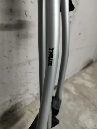 Portabicicletas de la marca Thule, diseñado para transportar bicicletas de forma segura. - Estructura de aluminio. - Sistema de sujeción ajustable. - Compatible con varios tipos de bicicletas.