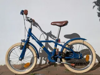 Bicicleta infantil Btwin City 900 en color azul, ideal para niños de 4 a 6 años, con altura recomendada de 105 a 120 cm - Cuadro de aluminio. - Ruedas de 16 pulgadas. - Sillín y puños marrones. - Guardabarros delantero y trasero. No incluye timbre.