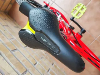 Bicicleta infantil Btwin Racing 900 de 16 pulgadas en color rojo. Muy cuidada, con cesta para llevar sus juguetes. - Ruedas de 16 pulgadas. - Diseño deportivo. - Pedales amarillos. - Guardabarros delantero y trasero.