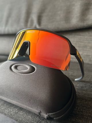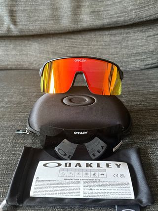 Gafas de sol Oakley Sutro Lite Sweep con lentes de espejo rojas y amarillas. - Diseño deportivo y moderno. - Montura negra. - Incluye funda y paño de limpieza.