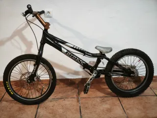 Bicicleta de trial de la marca DOX. - Cadena nueva. Se incluye el trozo de cadena cortado por si se necesita para alguna reparación. - Neumático Maxxis delantero Creepy Crawler nuevo - Frenos de disco Formula 4 Racing con su manual y dos juegos de pastillas de repuesto. Está bastante arañada la pintura, por lo demás funciona bien.