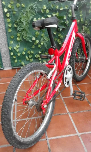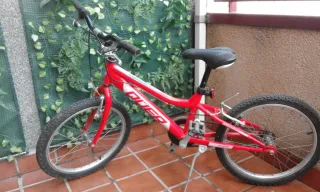 Bicicleta infantil de montaña de color rojo. - Cuadro de aluminio. - Suspensión delantera. - Frenos de disco.