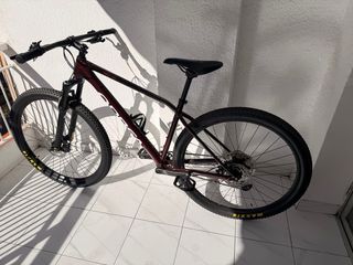 Bicicleta de montaña Orbea en color burdeos. Ideal para senderos y rutas. - Cuadro de aluminio. - Ruedas Maxxis. - Frenos de disco. Fue adquirida a principios del 2025 y se ha usado 3 veces