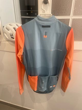 Maillot de ciclismo de manga larga en color salmón, ideal para gravel. - Cremallera frontal completa. - Bolsillos traseros. - Puños elásticos.